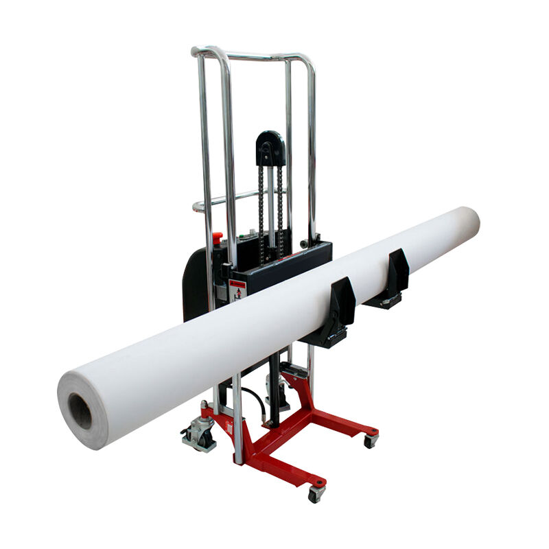 Powered by an electric lifting system, the EFM allows precise up-and-down control at the push of a button, reducing manual strain and improving workplace safety. It supports rolls up to 300 kg and 5 meters in length, with a maximum lifting height of 1300 mm.
